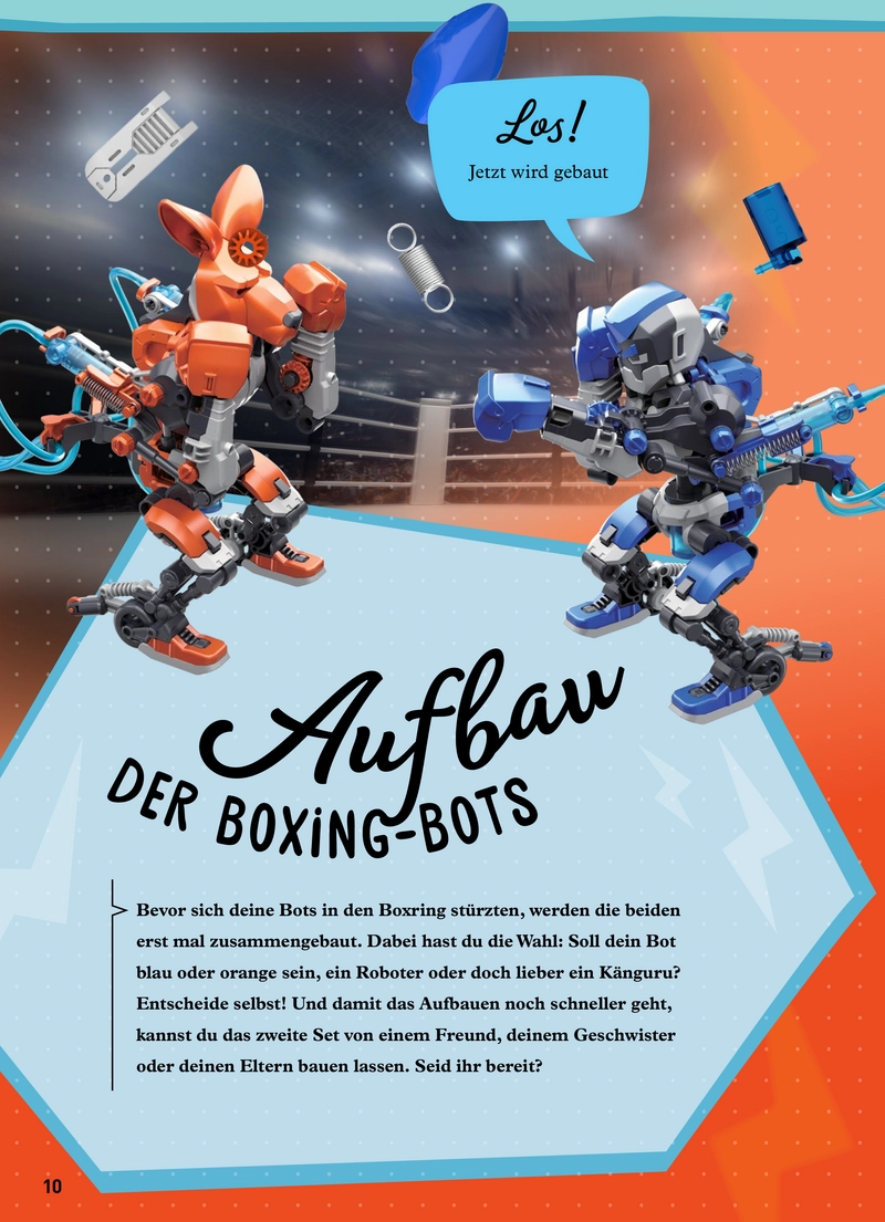 Die Spieler müssen ihre Roboter zuerst zusammenbauen, wobei sie zwischen verschiedenen Designs wählen können. Danach geht es in den Ring, wo die Kämpfe beginnen!