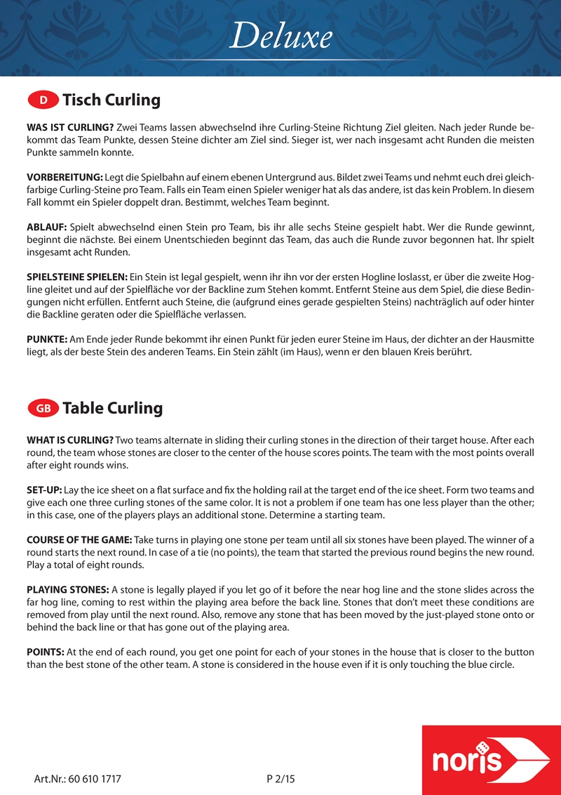 Um das Spiel zu spielen, bildet ihr zwei Teams und nehmt jeweils drei Curling-Steine. Die Spieler wechseln sich ab, einen Stein nach dem anderen zu spielen. Nach jeder Runde wird gezählt, welche Steine näher am Ziel sind.