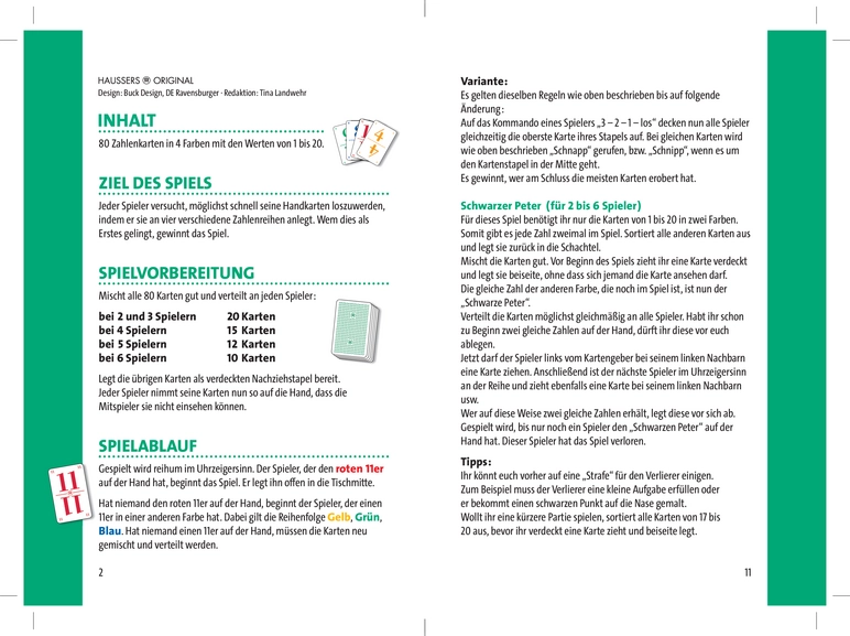 Zusätzlich finden Sie bei uns Anleitungen für Varianten, die auf geschicktes Punkte sammeln setzen, wie bei Cabo. Diese Vielfalt erlaubt die Nutzung der Spielanleitungen in ganz unterschiedlichen Situationen: