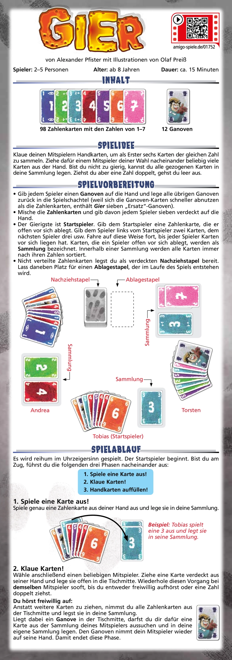 Alle Spielanleitungen können Sie bequem herunterladen und ausdrucken. Dadurch haben Sie jederzeit Zugriff auf klare Regeln, die den Einstieg erleichtern. Gleichzeitig unterstützen sie dabei, Konflikte während des Spiels durch eindeutige Regelwerke zu vermeiden. Unsere jeweiligen Downloads sind so aufgebaut, dass sie sowohl auf dem Bildschirm genutzt als auch in gedruckter Form optimal lesbar sind.